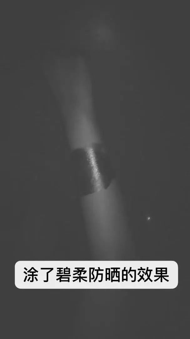 看!涂抹防曬的手臂區(qū)域,已經(jīng)直接變成黑色了,可見防護力之強。
