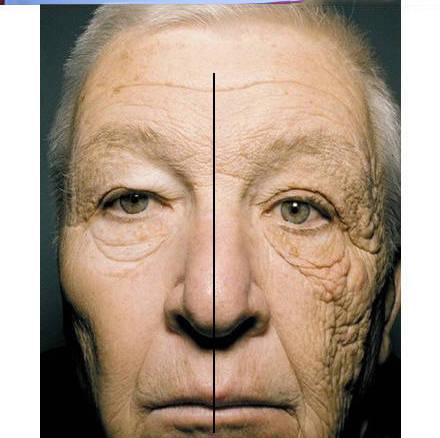 2、臉一邊長時間對紫外線和沒有長時間對紫外線的對比