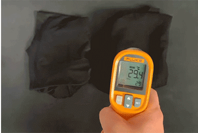 測(cè)溫槍實(shí)測(cè):普通T恤為29.4℃,而蛋白抗菌T恤為24.3℃,整整差了5℃,走在太陽(yáng)底下身上也不會(huì)被曬得發(fā)燙!
