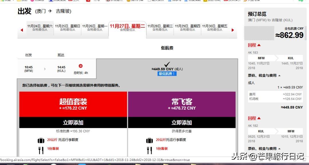 下圖機票為我今天查詢亞航官網(wǎng)上澳門往返吉隆坡價格,八百多,如果趕上大促,五六百都有可能 。