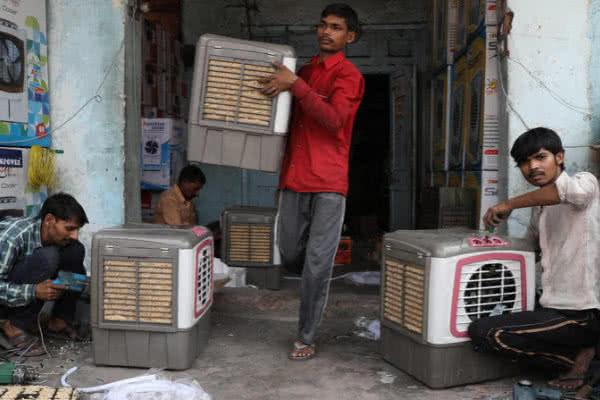隨著氣溫的增高,印度電風扇市場相當火爆,許多居民在電器維修中維修自家電風扇,期待能夠度過炎熱的夏天,印度中心城市已經(jīng)通電,少數(shù)農(nóng)村和落后地區(qū),依然停留在原始沒電的時代,走在大街上,可以看到當?shù)匦『⒂米詠硭馐畹霓k法,印度女子面對這樣的烈日,走在路上也不打傘,依靠著紗麗來遮擋頭上的烈日,印度人還習(xí)慣躺在路邊大樹下乘涼休息。