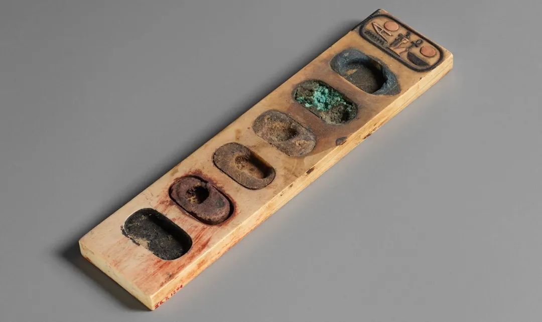 在古埃及圖坦卡蒙國王墓中,發(fā)現(xiàn)畫家象牙色的調(diào)色板里,有赭石紅色和其他五種顏色的顏料(圖7)。