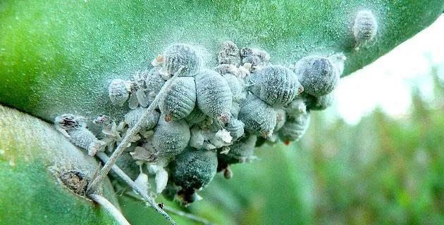 到了16 世紀(jì)初,歐洲出現(xiàn)了一種絢麗的新紅色。當(dāng)西班牙人登陸美洲時,他們發(fā)現(xiàn)這里金銀之外還有另一個寶藏——胭脂蟲,一種寄生在仙人掌植物上的介殼蟲,干燥碾碎后會呈現(xiàn)華麗的紅色(圖18)。