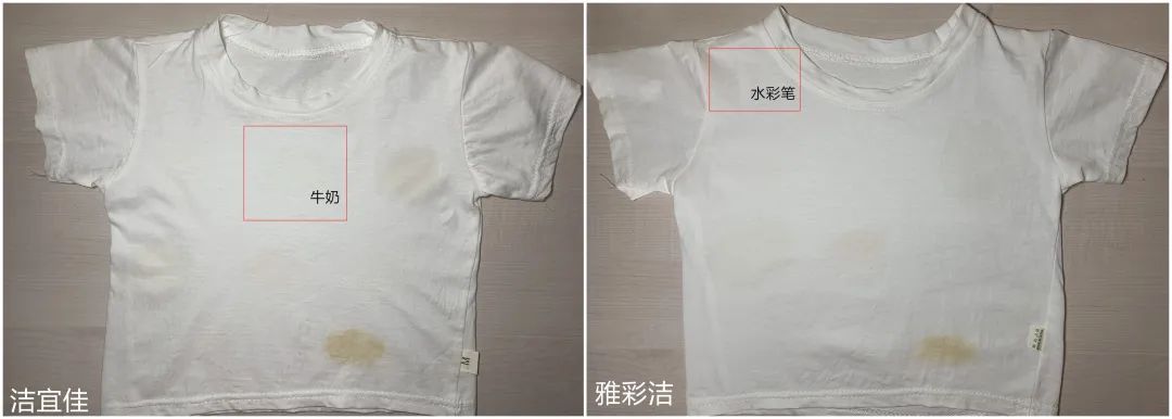 其中,韓奏、潔宜佳、雅彩潔,對于個別污漬的去除表現(xiàn)稍遜一點。