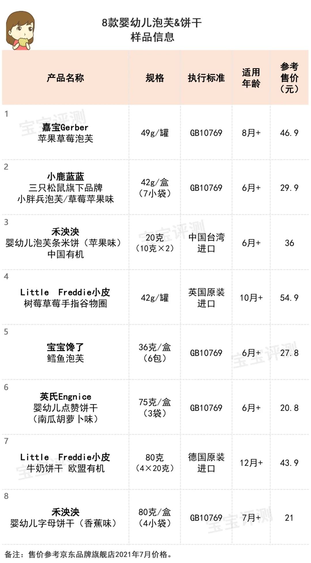 評(píng)測(cè)的8款泡芙、餅干中,小鹿藍(lán)藍(lán)、寶寶饞了、英氏添加有糖。