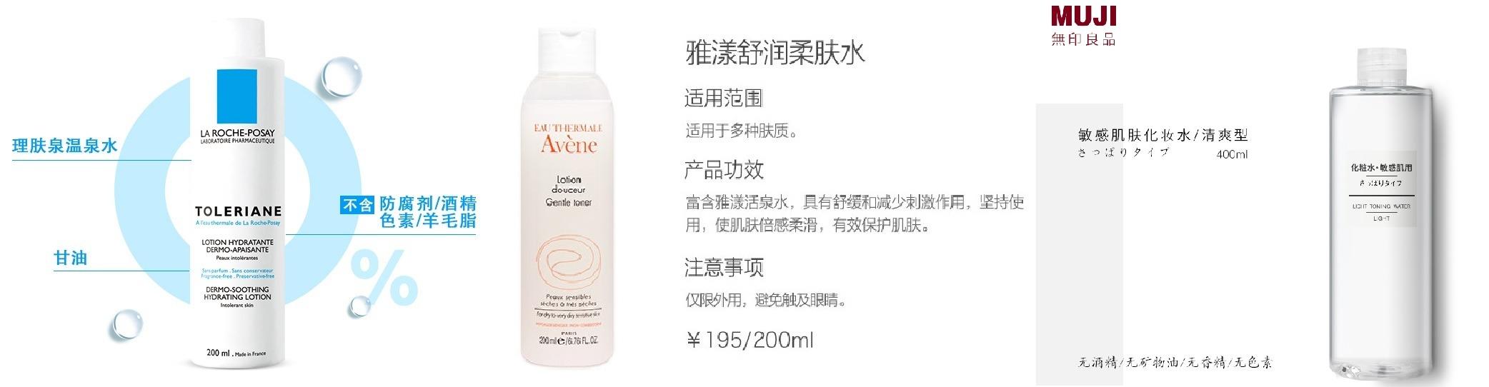 ? 水:選擇配方簡單的例如:理膚泉特安舒,雅漾舒潤柔膚水,無印良品清爽型化妝水(有一丟丟抗炎的果),或使用百分之6到8的甘油水(基礎(chǔ)油)噴臉拍臉。甘油不是油,而是一種吸水力特別強(qiáng)的保濕劑(它溶解在水里面)。