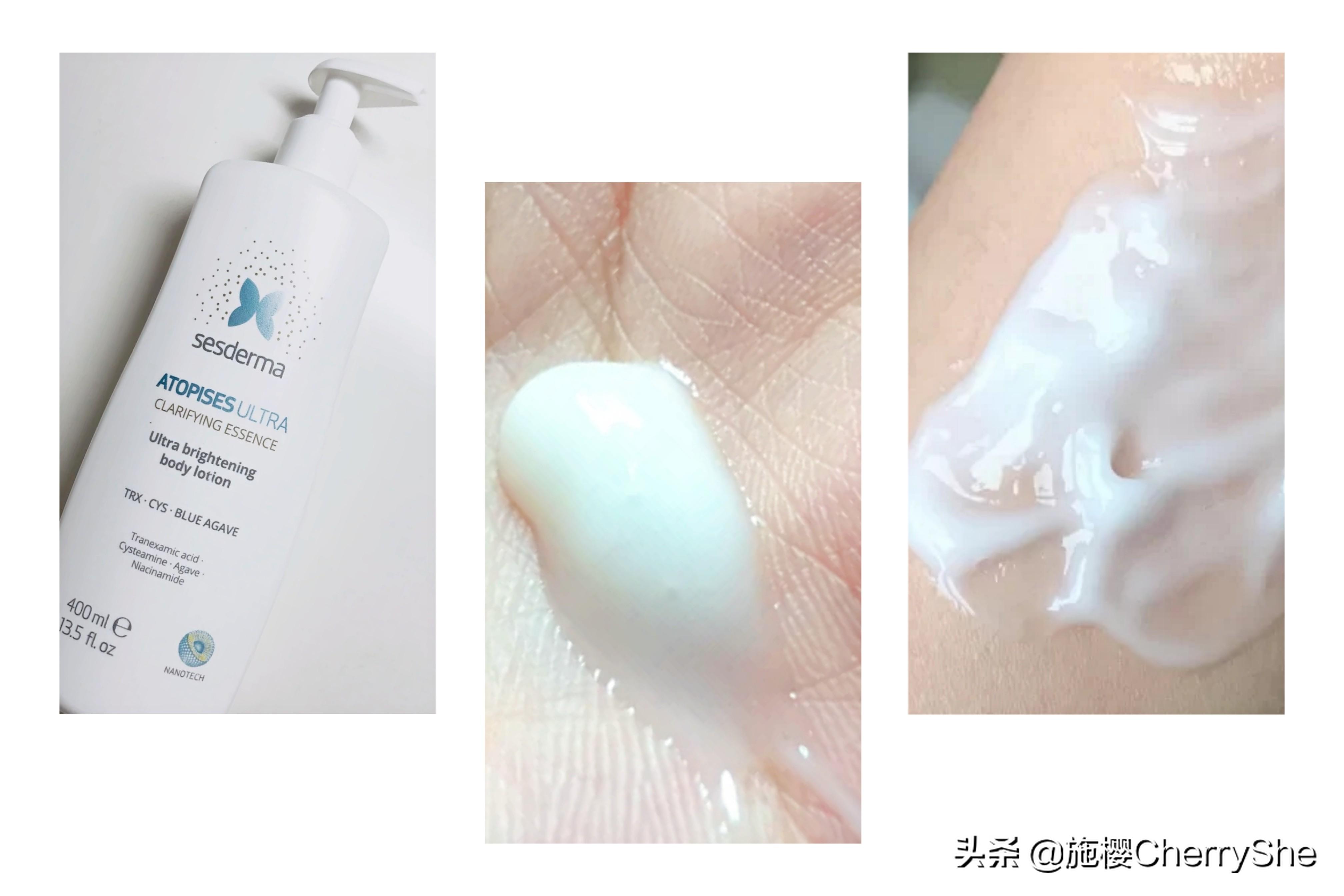 2.5%的煙酰胺:黃金配比,既能達(dá)到起濃度,又減少了耐受風(fēng)險,可以抑黑亮白。乙基VC:科顏氏小白瓶的主打成分,是一種親膚性和滲透性好的VC衍生物,可以抗氧美白,關(guān)鍵是足夠溫和。還有一些植物萃取,像龍舌蘭、霍霍巴油、甘草亭酸,龍舌蘭主打美白淡印,抗氧提亮,霍霍巴油主打鎖水保濕、那甘草亭酸主打的是鎮(zhèn)定和舒緩肌膚。另外,這款身體乳有個納米微脂囊技術(shù),一來呢,可以讓成分吸收得更好,二來呢,可以讓產(chǎn)品更加的溫和。升級版的質(zhì)地不再醇厚,而是稀薄的乳液質(zhì)地,不油,潤得剛剛好,相比舊款要清爽了不少,味道也不會很香,整體滿意。