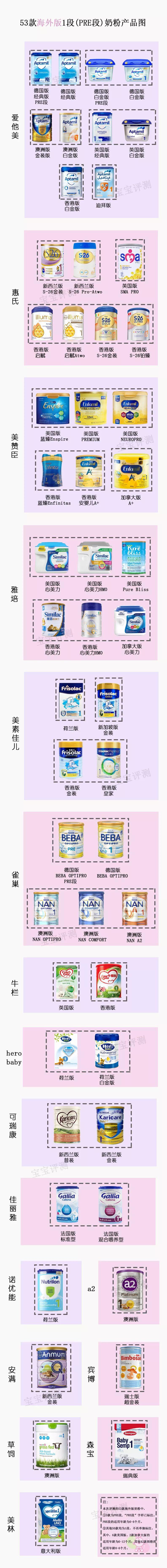 ③本次評(píng)測(cè)的53款海外版奶粉中,有3款為PRE段(“PRE段”字樣已標(biāo)注),其他50款均為1段(不再單獨(dú)標(biāo)注)。