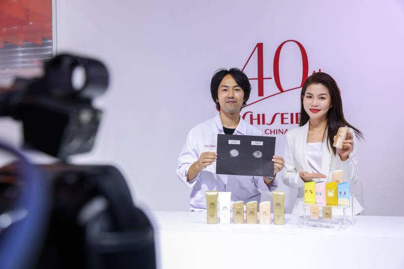 資生堂(中國)研究開發(fā)中心原田部長親臨現場,原田部長加入資生堂十多年,現任職于資生堂(中國)研究開發(fā)中心,一直在防曬技術領域鉆研開發(fā),參與過多款安熱沙產品的研發(fā)項目。品牌邀請到原田部長空降安熱沙進博會直播間,通過三個挑戰(zhàn)向現場觀眾及直播間的粉絲展示了小金瓶“防水”、“抗摩擦”、“不粘膩”的卓越性能。并且從專業(yè)的角度對小金瓶的防曬技術和成份進行了詳細的介紹!