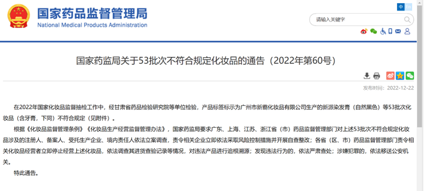 今年2月17日,藥監(jiān)局關(guān)于50批次不符合規(guī)定化妝品的通告中,資生堂的安熱沙水能戶外清透防曬乳SPF50+·PA+++也為不合規(guī)產(chǎn)品。