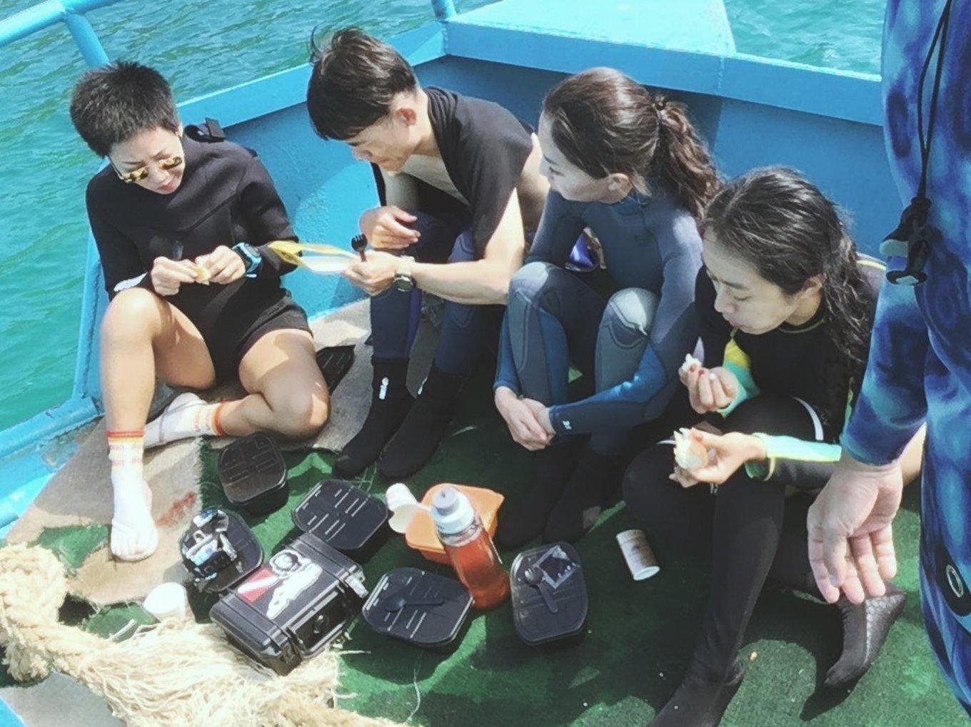 潛水的話,更需要一定厚度的濕衣。好是全身長袖長褲或者備長襪。