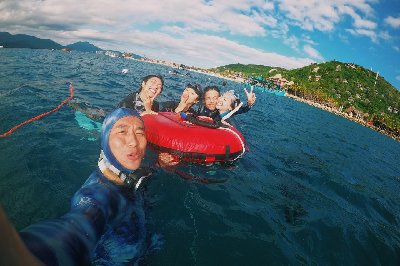 我們直奔潛水區(qū)平臺(tái),換好濕衣就下海了。上午攀繩,練習(xí)鴨式入水 和平 壓,感受16米的深度。下午繼續(xù)實(shí)操,完成救援的考核。