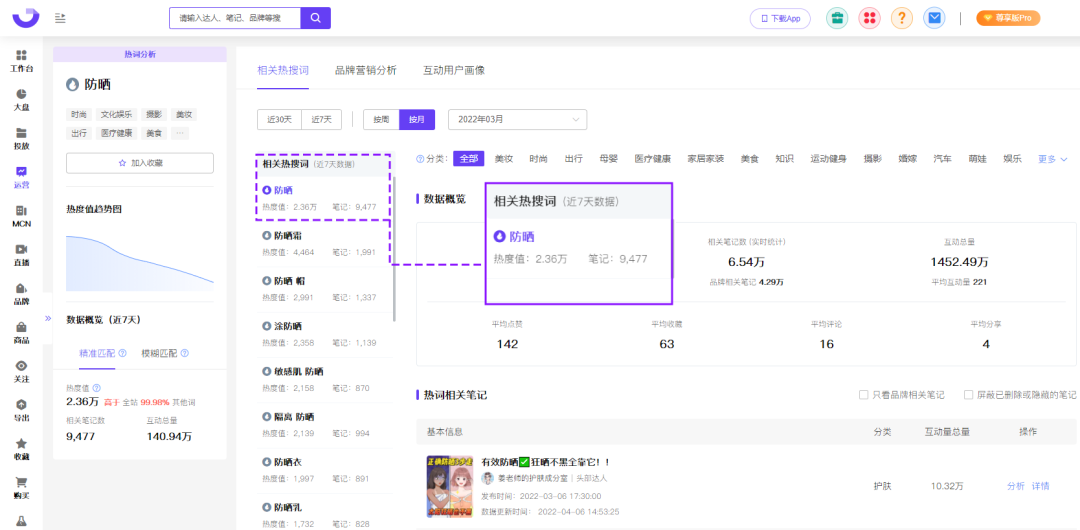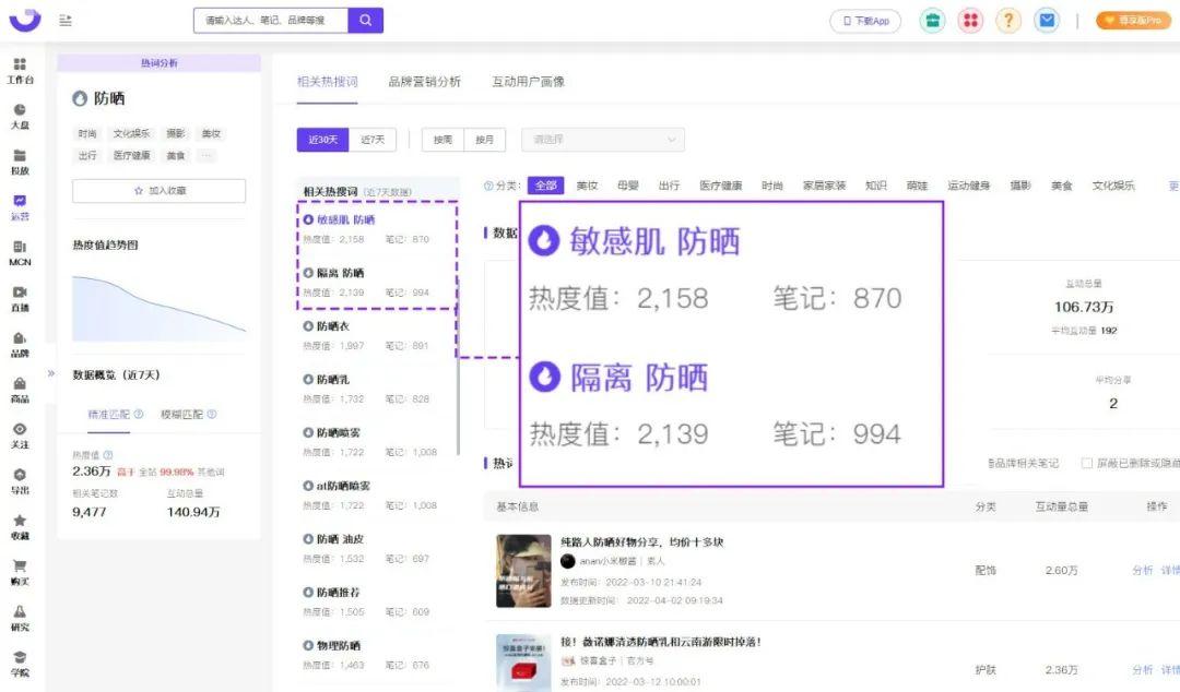 據(jù)果集·千瓜數(shù)據(jù)實時統(tǒng)計,“防曬”3月份在小紅書筆記中共有9477篇相關(guān)熱文,熱度值為17.02萬?!胺罆袢粘;?/strong>深入消費者心理,品牌方也緊緊抓住了迭代的防曬需求,針對性的推出新款功型防曬產(chǎn)品,解決了消費者的防曬顧慮,在功型細(xì)分防曬市場中獲得更多增長潛力。