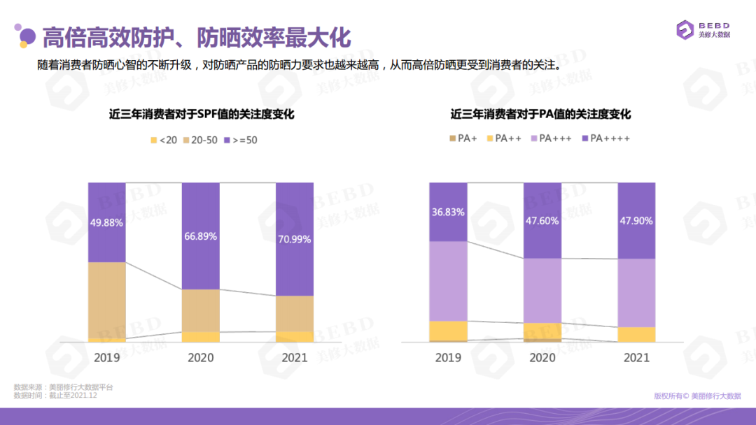 據(jù)美麗修行大數(shù)據(jù)團隊重磅發(fā)布了《2022年防曬行業(yè)趨勢指南》,2018年-2021年,消費者對防曬的需求逐漸升級為剛需,對比其他品類關(guān)注度成爆發(fā)式增長,防曬搜索量2019年-2021年增長7倍。