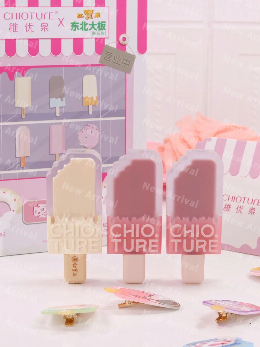 近日,稚優(yōu)泉聯(lián)合東北大板,以東北大板經典原味雪糕為靈感,推出「雪糕唇釉聯(lián)名禮盒」。
