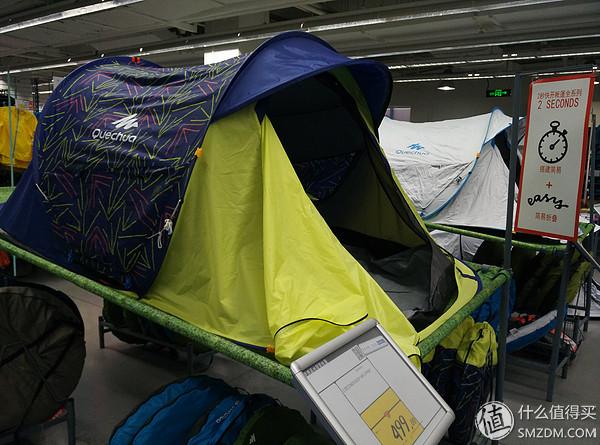 ▼ 此外,不得不說這款“2秒帳篷”。普通帳篷從打開到支起來,熟練工也要15分鐘,非熟練工經常迷失在打開的路上。迪卡儂研發(fā)的2秒帳篷,打開支起只要2秒,這不是分分鐘的事情,這是秒秒鐘的事情嘛!此款售價499,背后那款銀色的也是2秒帳篷,399元。網絡端更便宜。