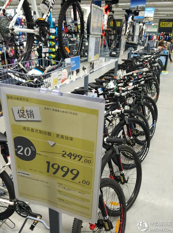 ▼ 自行車區(qū)域一撇,當然是受關注的山地車區(qū)域。迪卡儂旗下成人山地車,提供SML三個尺寸,我175的身高,M號正合適。