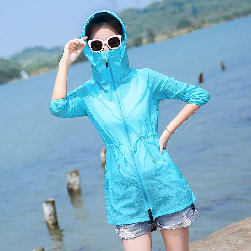 夏天為什么要穿防曬衣?防曬霜可能因?yàn)橥磕ú蛔懔俊⒉痪鶆蚨_(dá)不到足夠果;遮陽帽雖然方便但遮擋面積太??;打遮陽傘手累,面部和胳膊還會(huì)被環(huán)境中反射的紫外線照射。因此,入手一款合適的防曬衣可以說是必要啦。工作閑暇之余,自己或者帶著孩子出門的時(shí)候也不會(huì)懼怕烈日的暴曬,有了防曬服我們在烈日下可以肆意的行走。在這個(gè)酷熱的夏季,有這么一款既防曬,又方便穿著,還可以修身的防曬服,我們還有什么理由拒絕它呢,你要是不想變黑美人,又想要外出出行清爽又能防曬的話,那么防曬衣就成為您該必備的防曬裝備了,漂亮美眉夏天外出穿著是越來越少,但美麗肌膚怎能抵擋得了強(qiáng)烈紫外線的侵襲,漂亮?xí)r尚的防曬衣就成為保護(hù)MM們的必備神器了,下面這幾款樣式多樣,款式新穎,美眉,媽媽們不應(yīng)該錯(cuò)過喲!