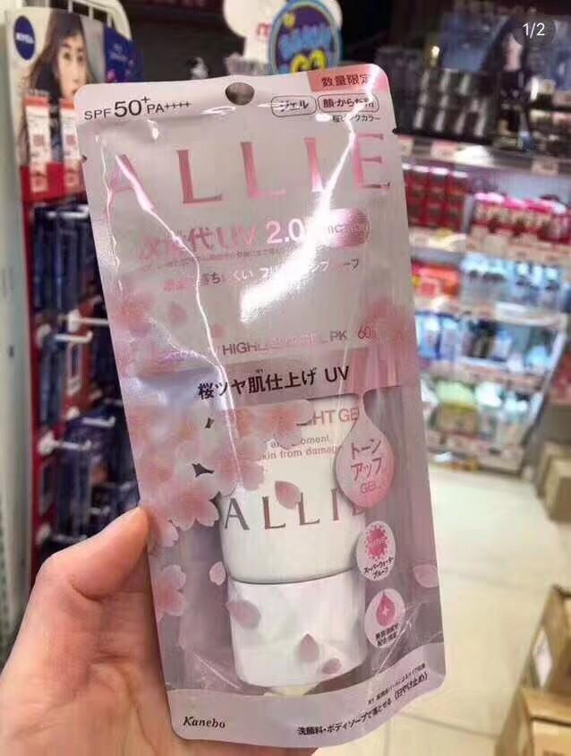 限量櫻花版 日本嘉娜寶ALLIE粉色控油防曬霜60g(藍(lán)色為基礎(chǔ)版90g)溫和無刺激,適用于油性肌膚和混油性肌膚,能有防曬的同時(shí)還可控油哦?防曬指數(shù)spf50 pa++++,兼具防曬霜和隔離霜的果,防曬同時(shí)隔離彩妝。無油配方,即使不化妝也可以長(zhǎng)期使用,長(zhǎng)持久,清爽控油。適合日常生活用