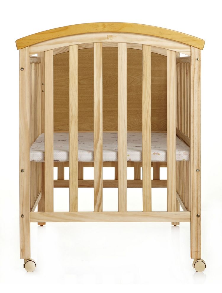 4、嬰兒床床鋪面上相鄰板條之間的間隙也不宜過大,一般為45mm~65mm,否則會有夾住寶寶頭部的風(fēng)險。