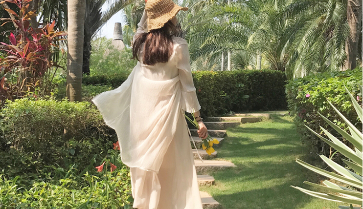 透視網(wǎng)紗薄外套泰國旅游度假上衣中長款防曬開衫沙灘海邊防曬衣女