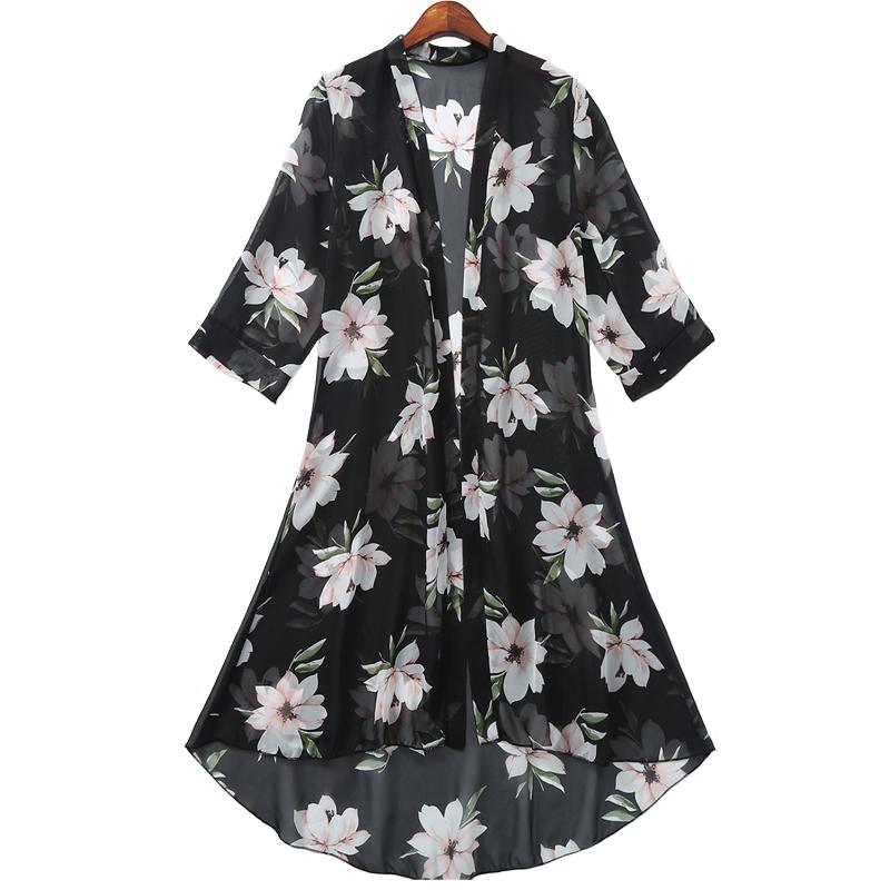 2018夏季新款大碼薄款中長款雪紡?fù)馓追雷贤饩€開衫沙灘防曬衣女