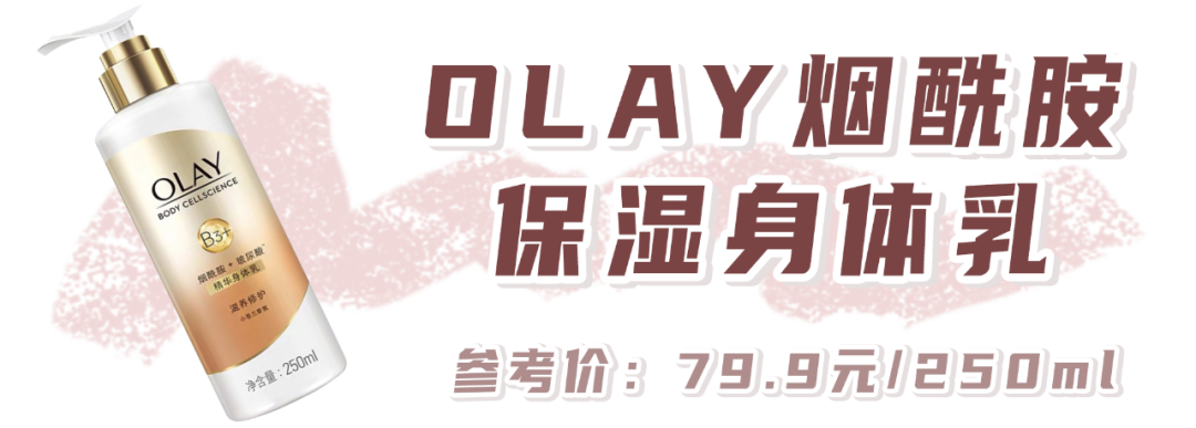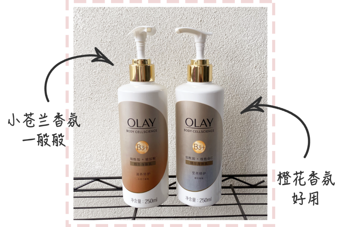 Olay的煙酰胺身體乳前一陣也是全網(wǎng)推,我是沖著它的煙酰胺美白果入手的。味道也很香,參照了祖馬龍的小蒼蘭、橙花和藍(lán)風(fēng)鈴,功分別是玻尿酸補(bǔ)水、維C美白和勝肽緊致。
