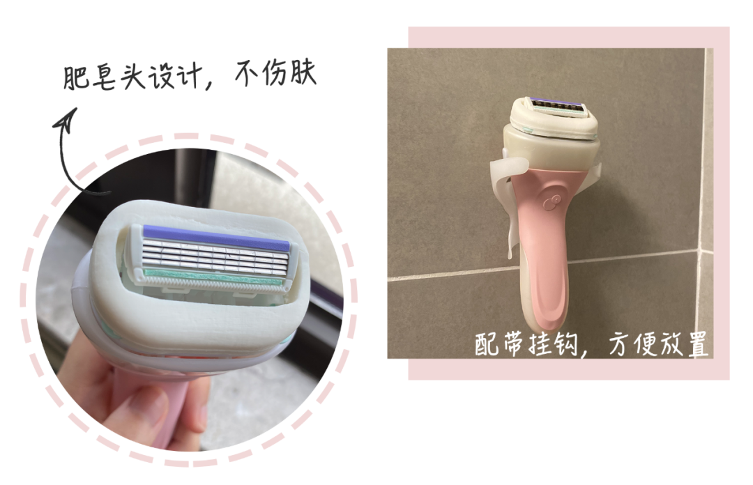 這款刮得干凈,刮頭處帶有肥皂,所以刮毛的時(shí)候沒有感覺。我用的這款是粉色的,適合中性皮,還有一款綠色的更溫和,適合敏感肌使用。