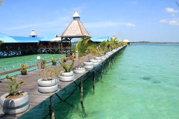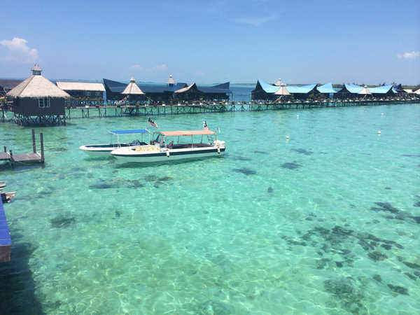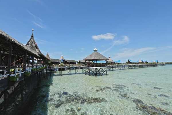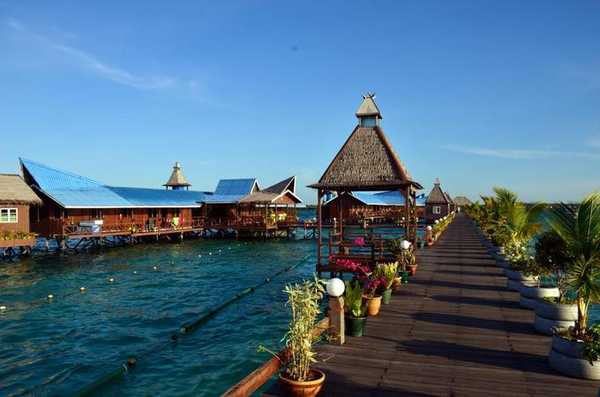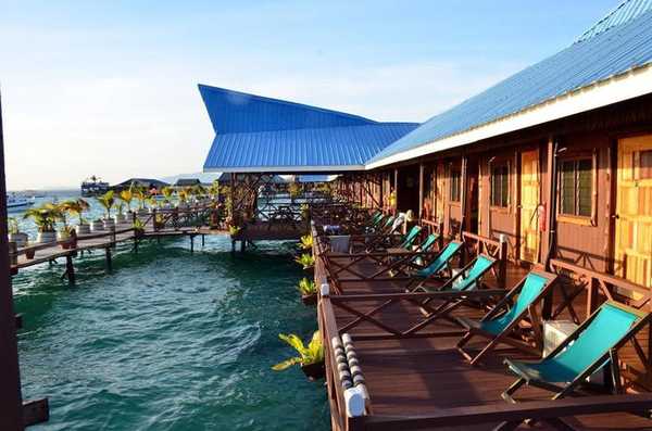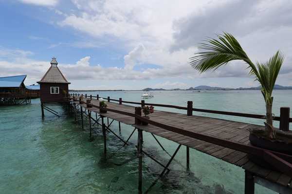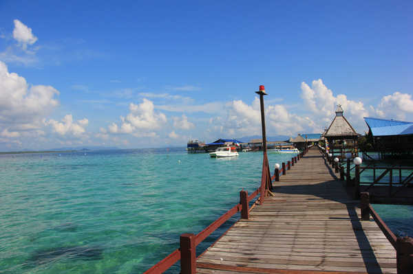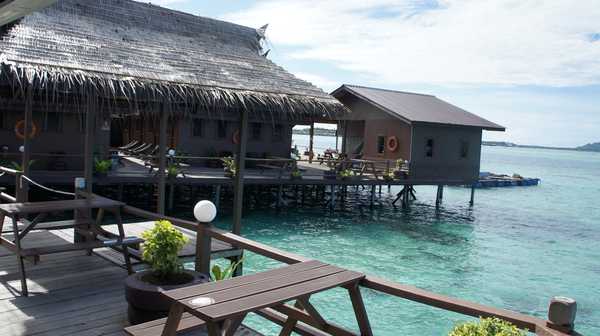 第二天起了個大早,7點半仙本那新佳馬達辦事處辦理手續(xù),辦事處就在海豐對面,8點乘船,10多分鐘的船乘,一座漂亮的水上度假村立刻呈現在我們面前。