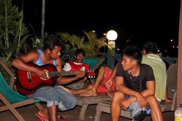 學習了一天的課程,晚上坐在露臺上,吹吹海風,和潛客們交流一下心得體會,看看大神們拍的照片和視頻,還可以聽聽度假村工作人員吉他彈唱,是一種莫大的快樂和享受。