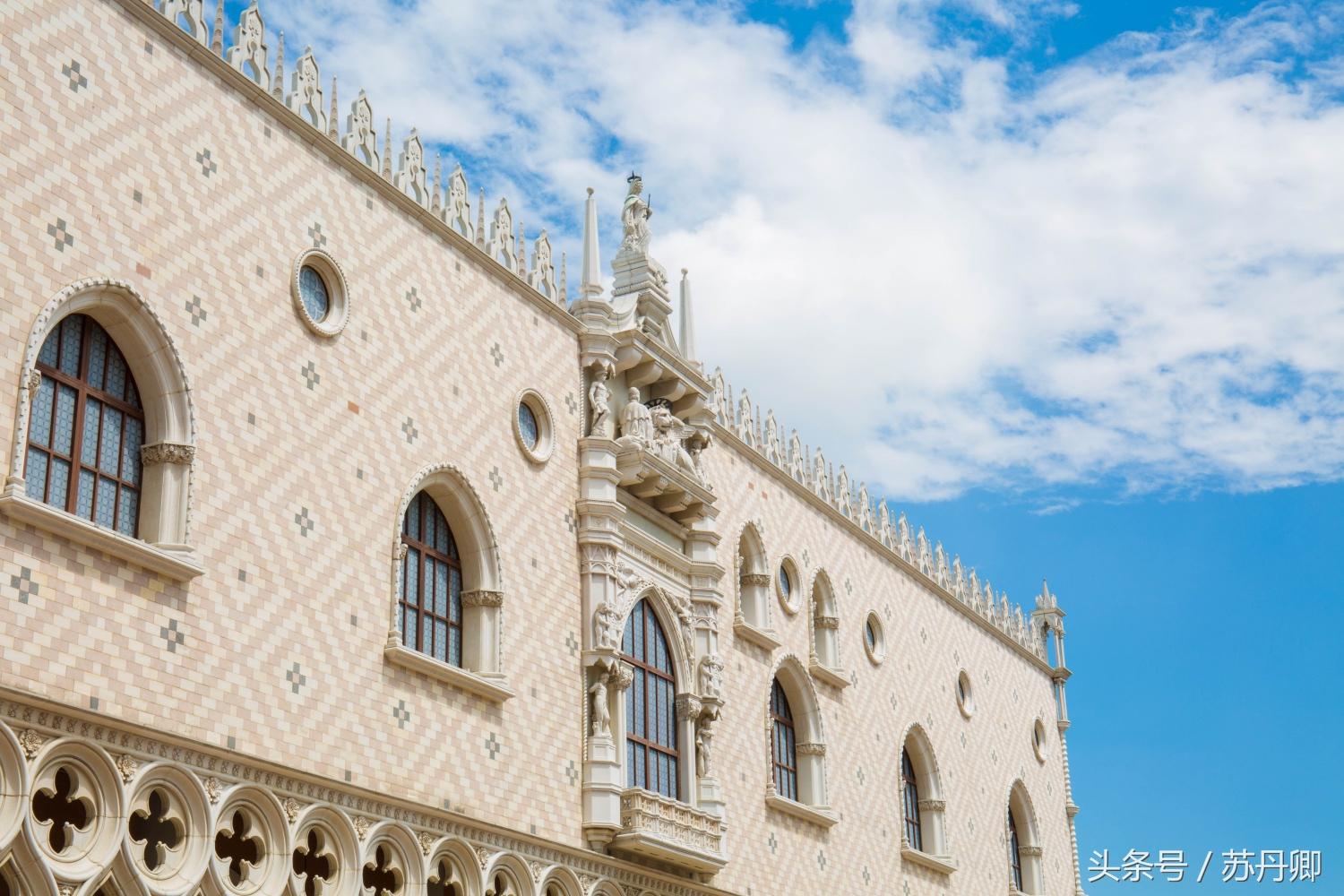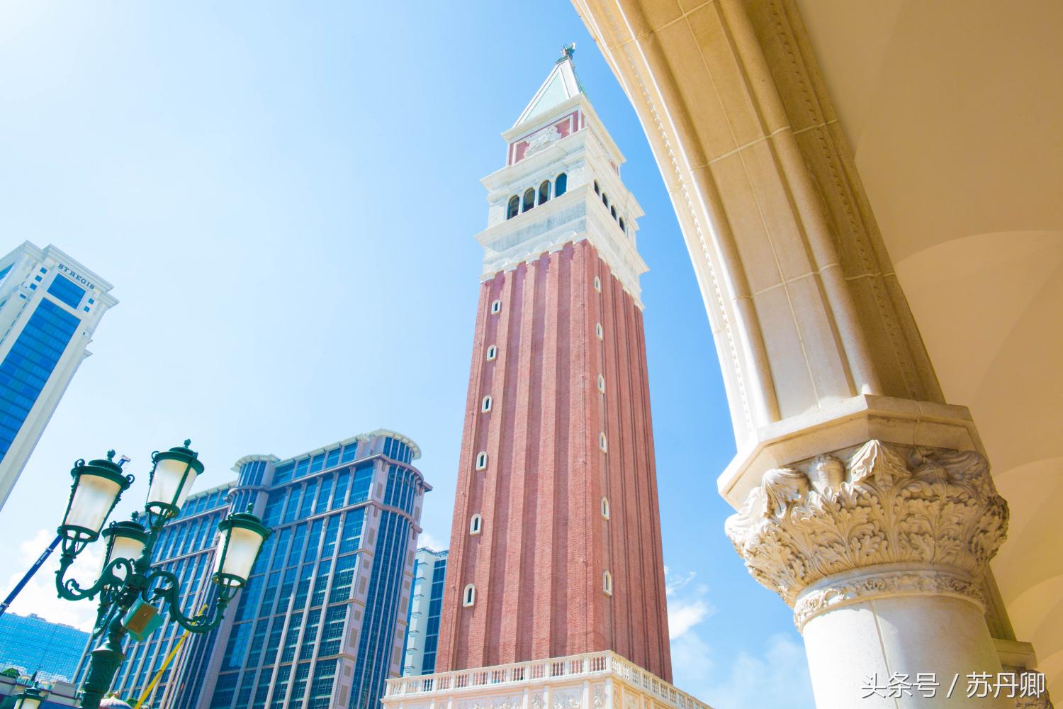 由于澳門的天氣基本上就很好,天空始終是藍天白云的樣子。早上八點用完早餐(在前一天晚上可以在房間電話預約第二天的早餐,有西式,中式等。種類都可以選擇的哦),背著相機從酒店大堂側門出去,你會發(fā)現(xiàn)酒店的建筑復原了古老意大利和威尼斯的建筑以及雕塑,很多游客都在站在門口拍一張留影照,十分具有紀念意義。