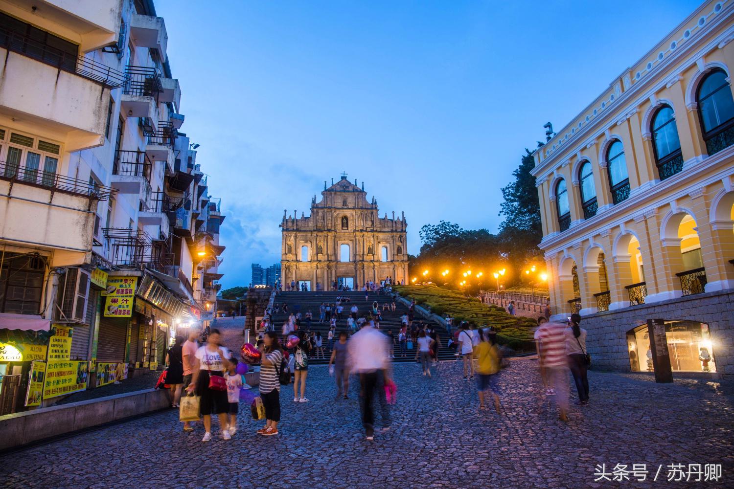 前往大三巴牌坊的路上,會有看到玫瑰教堂,或是其他古老建筑,以及一條的美食小吃街。大三巴在晚上八點左右,會亮燈。雖然在六點多的時候,燈光就已經亮了,但還看不到燈光的果。等藍調出現(xiàn)的時候,燈光下的大三巴看著浪漫。還幸運的看到一場求婚,只是在準備放氣球的時候,被保安趕走了,場面真是感動又尷尬...哈哈哈!