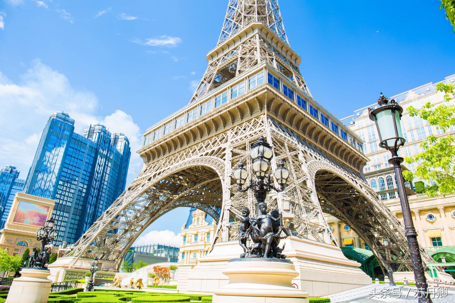 晴朗的天空下,澳門的“埃菲爾鐵塔”雖然是復雜的巴黎鐵塔,但依舊讓我感動,好像我再次來到巴黎。澳門巴黎人鐵塔的高度是巴黎埃菲爾鐵塔的二分之一,且設有6600盞燈及26公里長的電纜。巴黎人鐵塔高166米、重2700噸,按照巴黎埃菲爾鐵塔2:1比例復制的鐵塔在澳門鬧騰的繁華度假區(qū)矗立起來。而且,該鐵塔是世界上大的埃菲爾鐵塔仿制品之一。