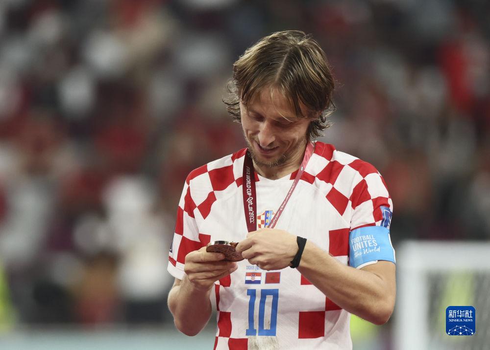 克羅地亞隊(duì)擊敗摩洛哥隊(duì)獲得第三名,連續(xù)兩屆世界杯登上領(lǐng)獎臺。在頒獎儀式后,望著12歲的兒子伊萬諾和隊(duì)友的孩子們在場上恣意奔跑,莫德里奇的眼中滿是溫柔。