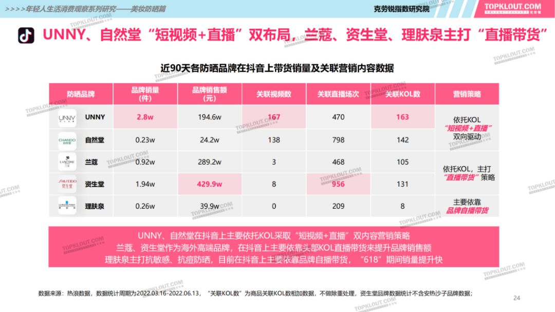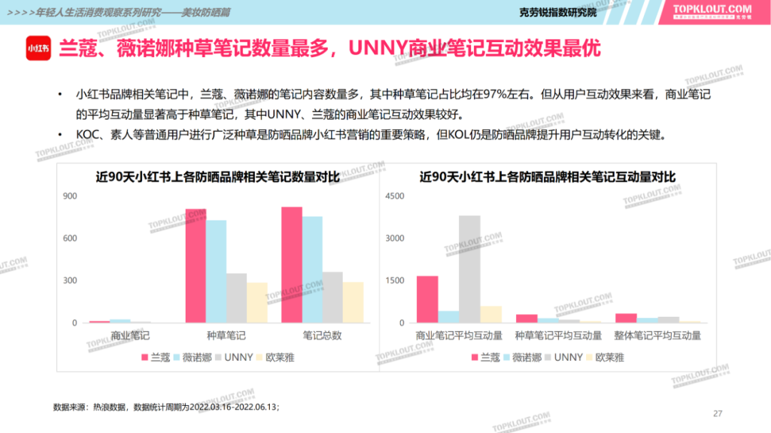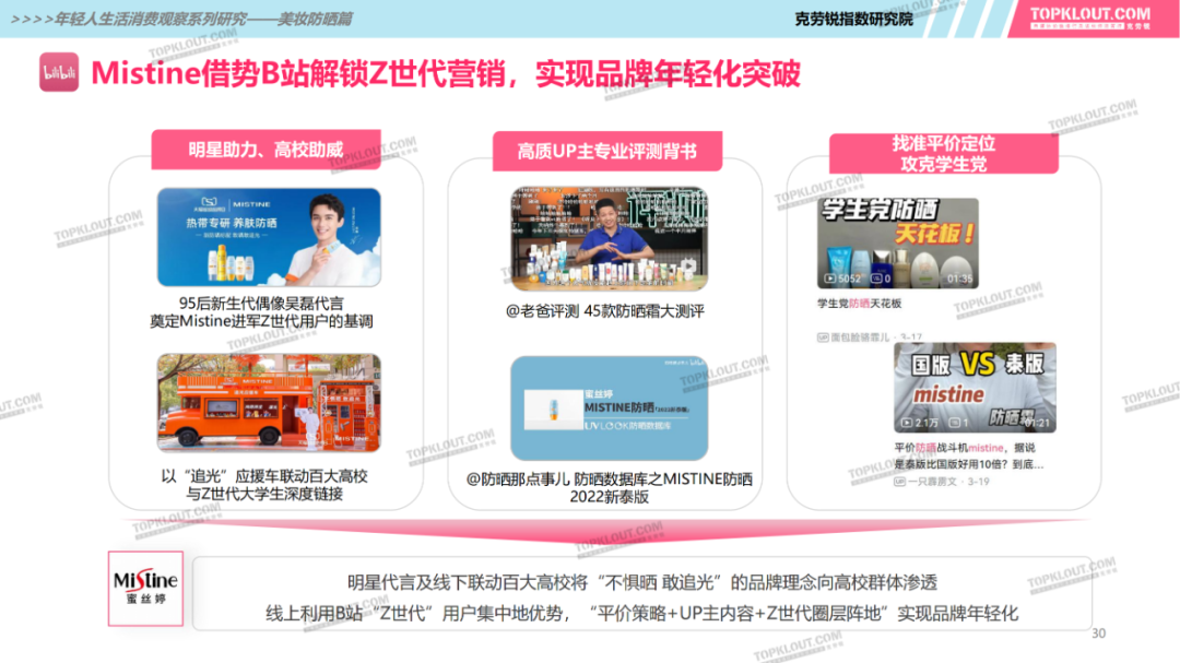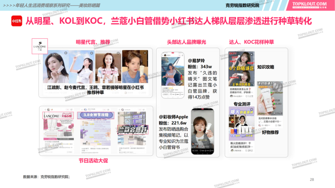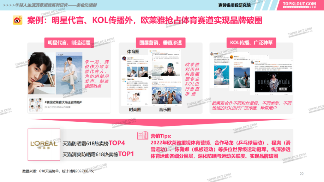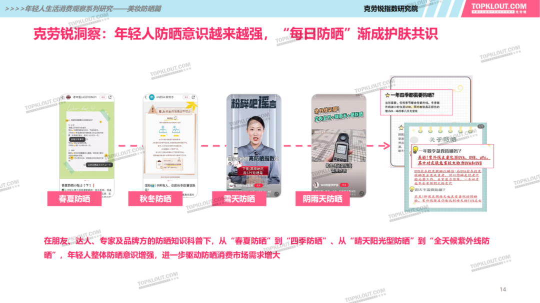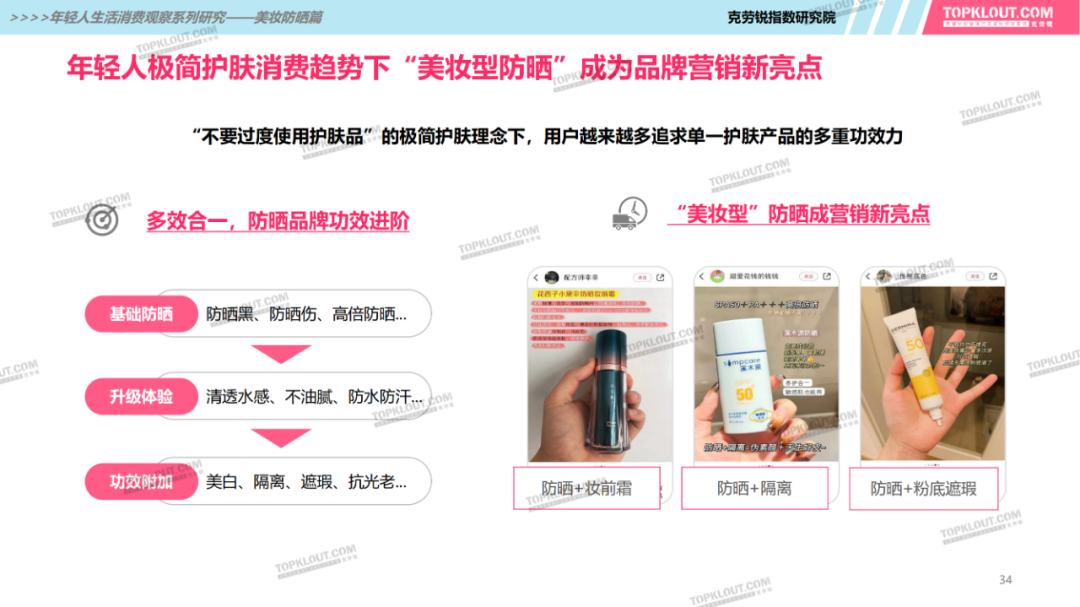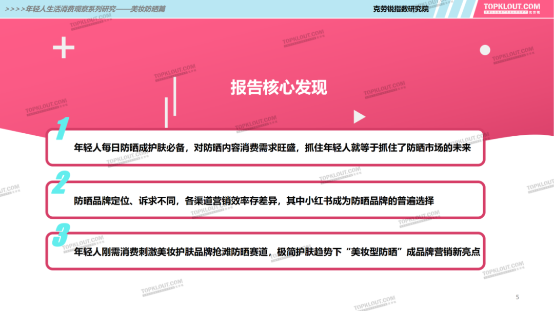 年輕人對(duì)防曬護(hù)膚品的需求特征是什么?不同平臺(tái)上受年輕人歡迎的防曬品牌有哪些?如何做營(yíng)銷(xiāo)?防曬品牌在各平臺(tái)的營(yíng)銷(xiāo)差異有哪些?怎樣做社交內(nèi)容營(yíng)銷(xiāo)更易吸引年輕人的注意力?透過(guò)不同防曬品牌的內(nèi)容營(yíng)銷(xiāo)看到了哪些營(yíng)銷(xiāo)新機(jī)會(huì)?報(bào)告中“防曬”研究聚焦美妝個(gè)護(hù)領(lǐng)域,討論范圍包含防曬霜、防曬乳、防曬噴霧等。研究?jī)?nèi)容包括年輕人防曬消費(fèi)的需求差異及各平臺(tái)防曬相關(guān)的品牌、KOL、內(nèi)容、用戶(hù)互動(dòng)評(píng)論等。