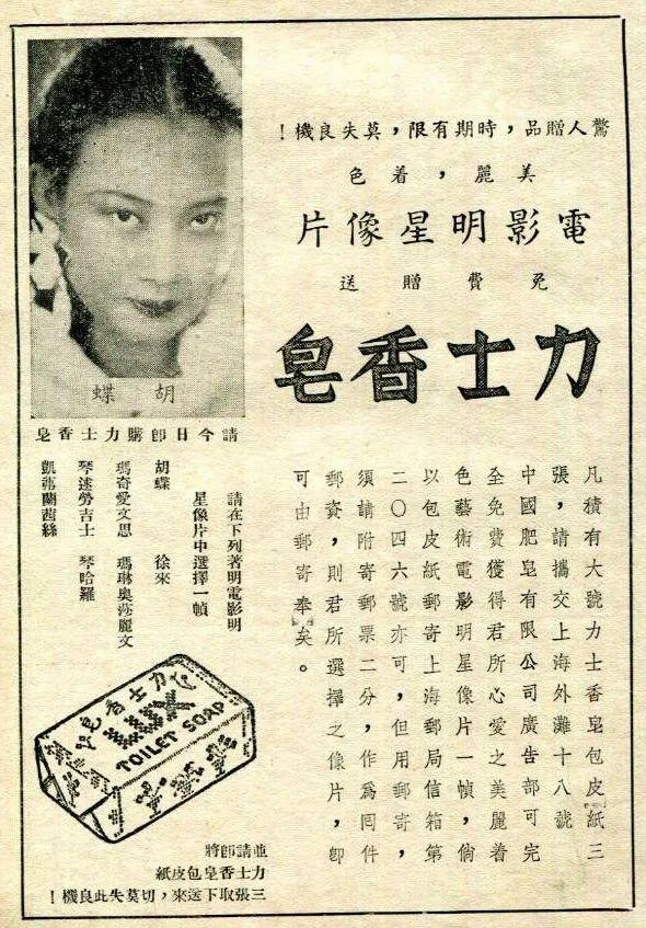 左:三張大號力士香皂包皮紙可以換一張胡蝶的明星卡片