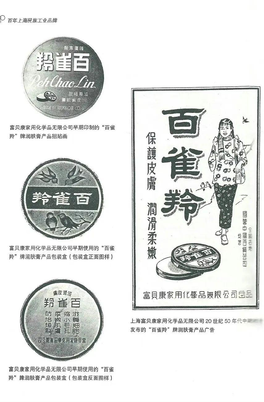 右:一組百雀羚潤膚膏過去的產品包裝圖