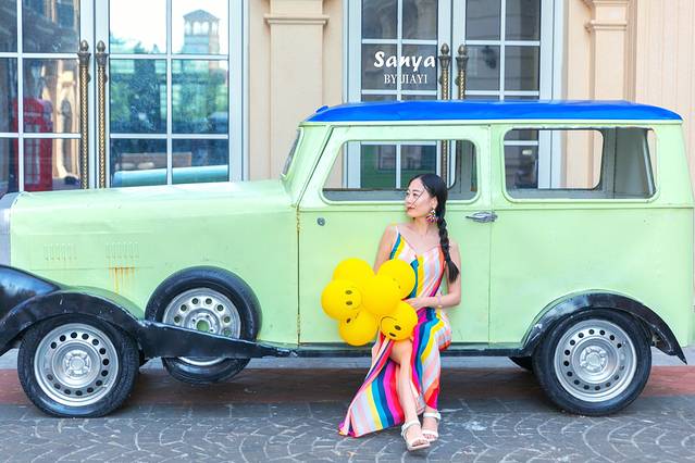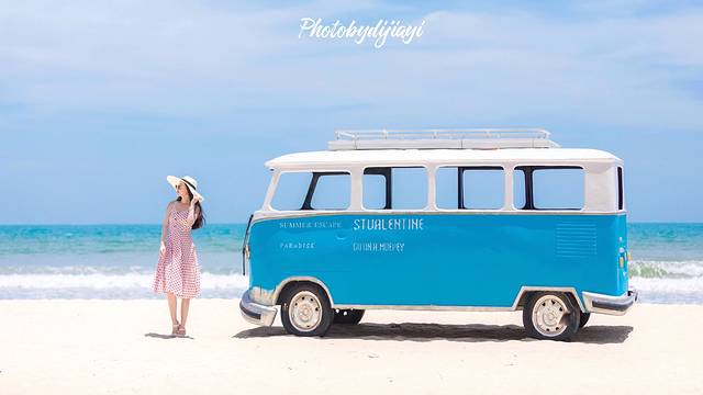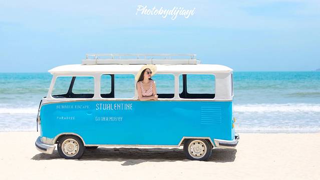 下午很曬,雖說我涂好了防曬,也只能速戰(zhàn)速決。建議大家來 三亞 一定一定要做好防曬工作。之前,呆呆島那個粉色的小車火了,沒想到 三亞灣 這里就有,還是個可愛的小藍(lán)車。
