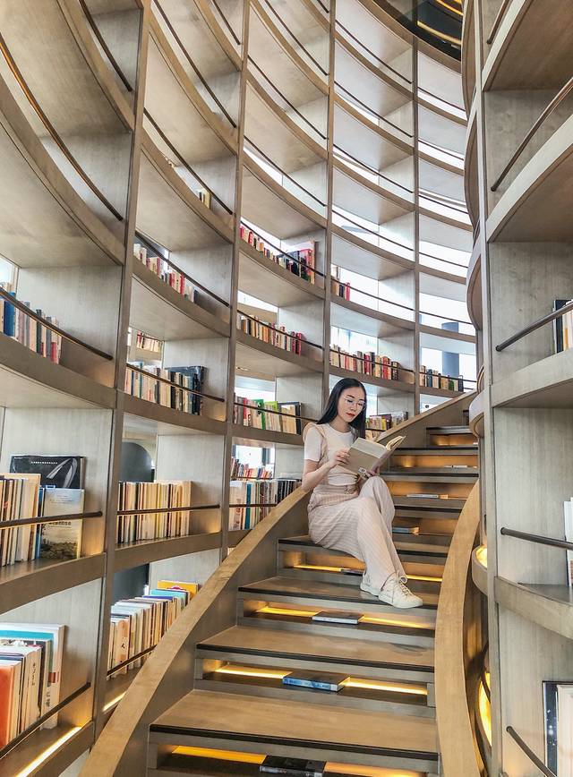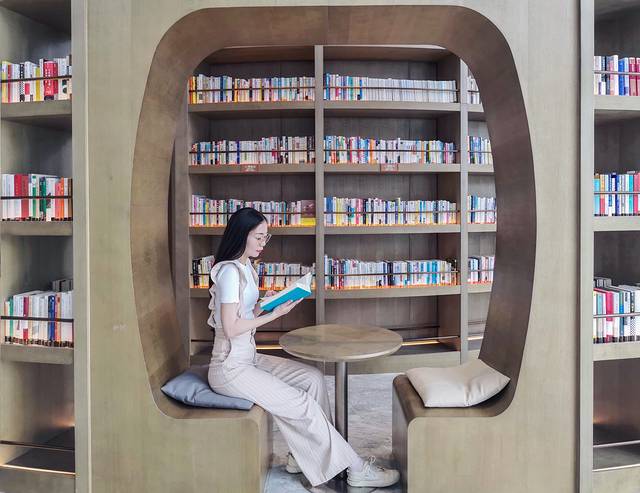 讀書館內(nèi)所有書籍的擺放序列,均按照由簡到繁、由表及里的知識結(jié)構(gòu)盤旋向上擺放。在這里的每一步拾階而上,都像是一次人生智慧與閱歷的升華。周邊還有舒適的沙發(fā),茶桌,還可以點上一杯飲料或咖啡靜享時光的流逝。