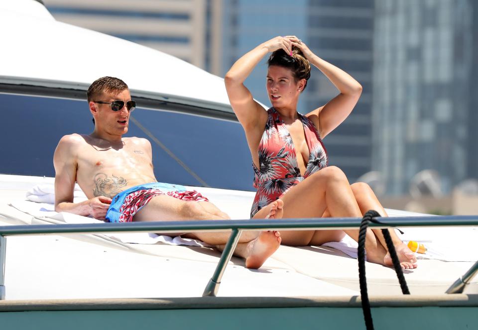 正值休賽期,35歲的麗貝卡和瓦爾迪選擇前往迪拜租了游艇享受假期。在兒子出生后,麗貝卡迅速恢復(fù)了好身材,而他們兩人也選擇將兒子留在家中,并外出度假。