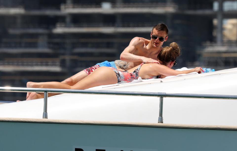 虎撲6月18日訊 《太陽(yáng)報(bào)》消息,瓦爾迪正和自己的妻子麗貝卡前往迪拜度假,而英媒也拍到了瓦爾迪為自己妻子涂防曬霜的照片。