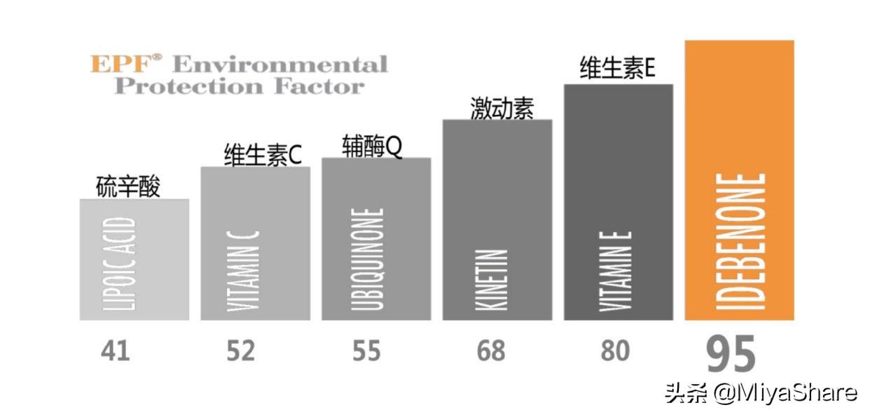 而關(guān)于艾地苯的作用,在2005年一篇關(guān)于抗氧化劑抗氧化能力的實驗報告中,用維C、維E、艾地苯、硫酸鋅、艾地苯做對比。在同樣濃度的有成分下,使用不同的5種測試方法,同時也使用了人體測試,后艾地苯的抗氧化能力領(lǐng)先,甚至超過了維E和維C。