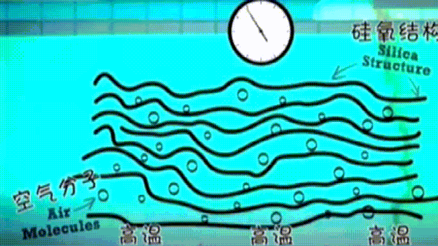 超臨界的二氧化碳從中擴散出來,而且不會導(dǎo)致溶膠的固態(tài)框架崩塌,這一過程將凝膠變成了被空氣占據(jù)了大部分空間的透明固體,這樣氣凝膠就制造完成了。