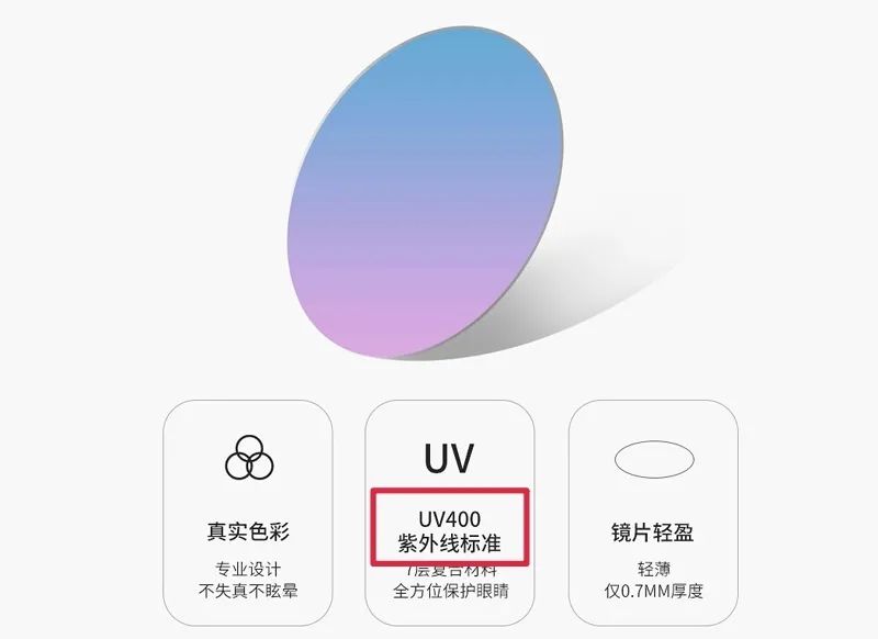 有“UV400”標(biāo)識(shí)的太陽(yáng)鏡,可以地反射、吸收紫外線,但同時(shí)也會(huì)阻擋一部分可見光,導(dǎo)致咱們從太陽(yáng)鏡里看出去的世界會(huì)少幾分色彩。