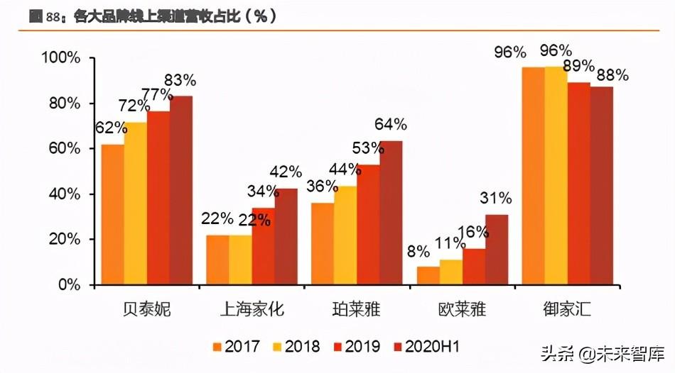 線上電商渠道競爭激烈,未來仍是功能性護膚品牌角逐的主戰(zhàn)場。目前各大品牌已逐漸優(yōu) 化線上電商端全渠道的優(yōu)化布局,無論是利用個體內容創(chuàng)作者輸出的優(yōu)質品牌營銷內容吸 引流量,還是創(chuàng)新打造其他網紅商業(yè)營銷模式,線上端的競爭已極為激烈,銷售費率持續(xù) 提升。從銷售收入角度來看,商業(yè)變現能力也較為突出。全渠道、全平臺、強營銷品牌有 望在線上渠道角逐中占據主動地位。