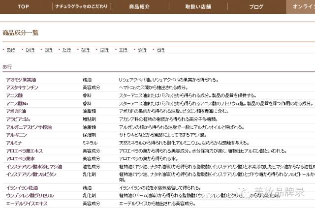 其次,產(chǎn)品中每個(gè)成分的用途和提取來源全部公開: