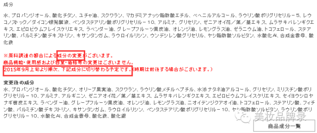 如果成分有調(diào)整,也要在官網(wǎng)上寫清楚: