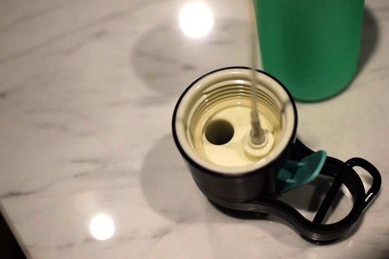 可以看到杯蓋內(nèi)部?jī)?nèi)置有密封圈,360度晃動(dòng)也不會(huì)漏水。