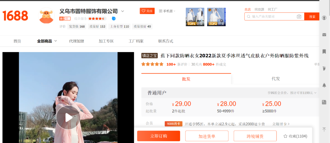 圖 / 1688平臺上,有企業(yè)售賣蕉下同款防曬衣