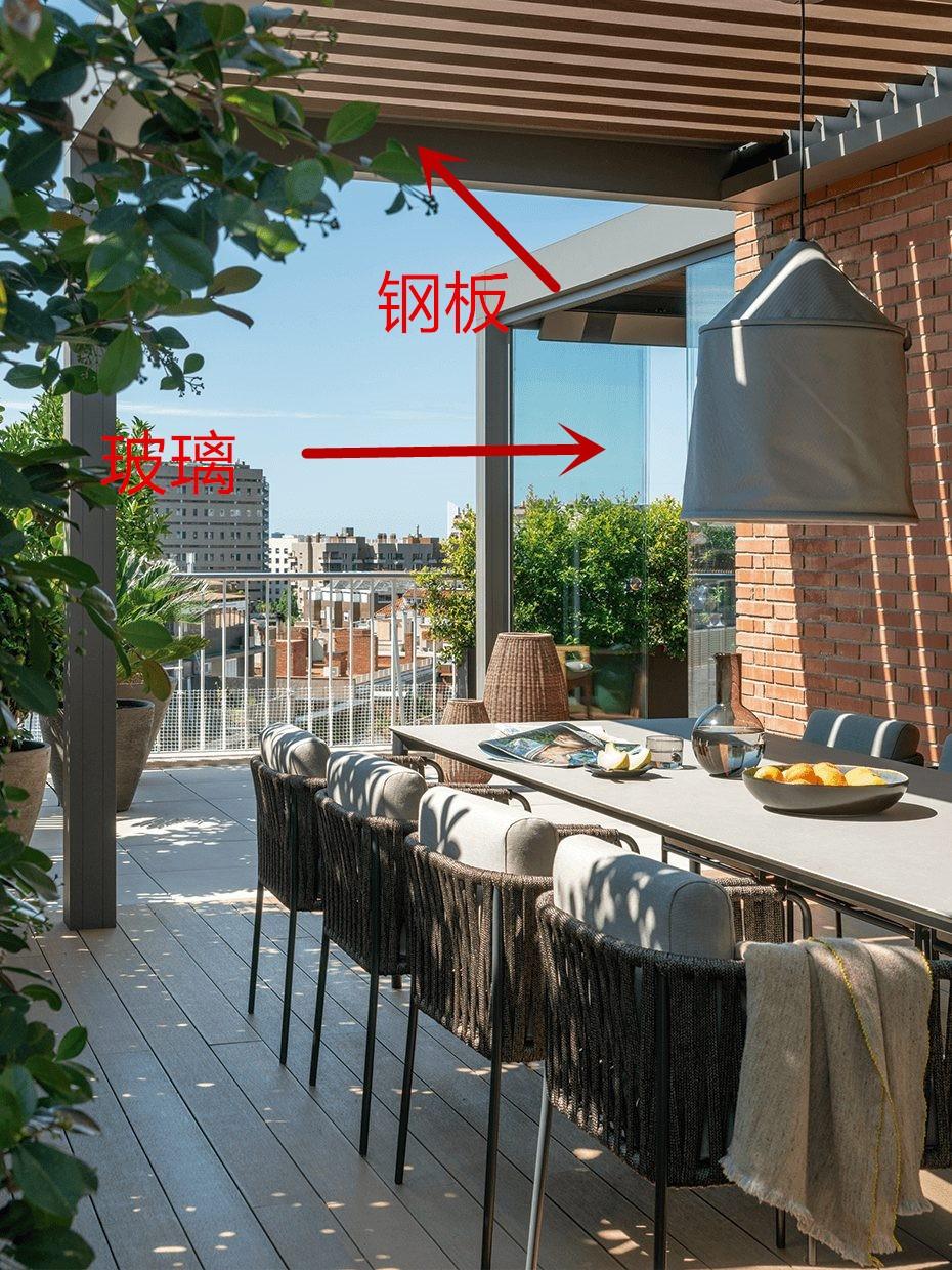 2、選擇鋼材和玻璃混合搭建。鋼材的穩(wěn)定性能上比一般的金屬材料要好,另外,玻璃的透光性好,用在露臺或者陽臺上都是不錯的選擇。